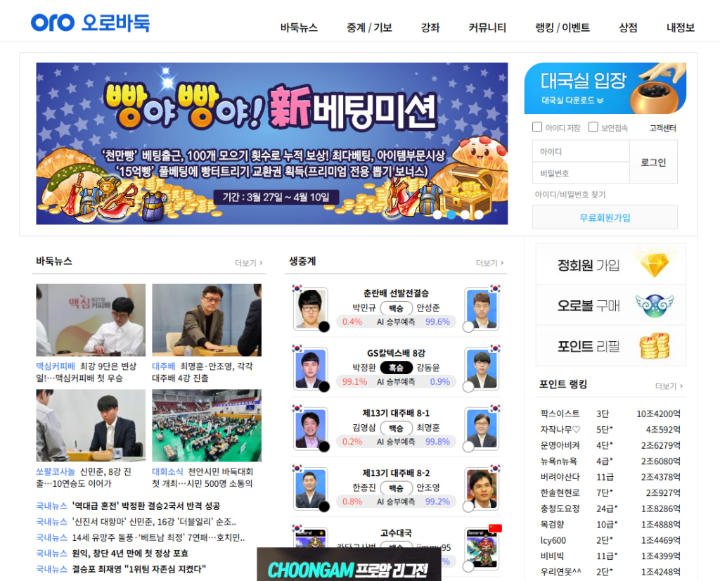 사이버오로바둑 홈페이지